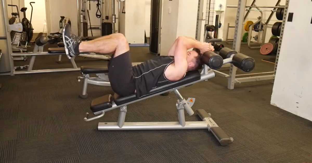 عضلات درگیر کرانچ معکوس روی میز شیب دار